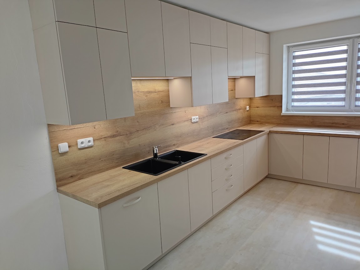 Provádíme zakázkovou výrobu nábytku, zejména kuchyňských linek a vestavěných skříní, je ale možné domluvit se na zařízení jakékoli části interiéru.